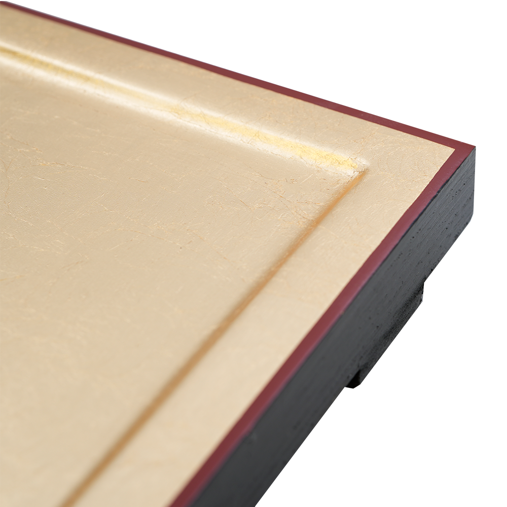 Once the wood panel is cut to the desired dimensions, our crafters carefully apply the 24k Gold Leaves into the prepared surface.
