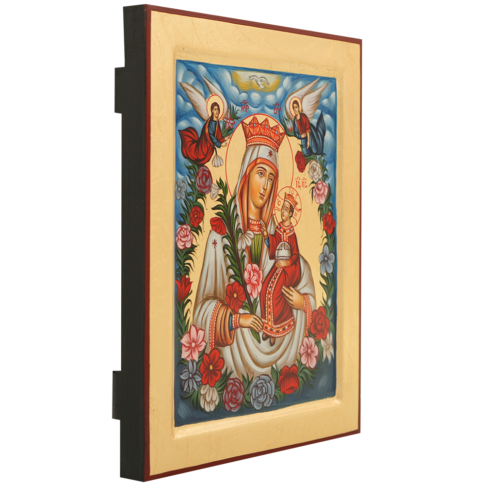 Эта икона — 100% рукописное произведение византийского искусства, полностью созданное и расписанное вручную. Она сделана из дерева, и вы можете выбрать матовые золотые листья или 24-каратный позолоченный фон. Эта икона полностью сделана вручную, и хотя она может иметь очень незначительные отличия от показанных фотографий, она доставляется надлежащим образом и надежно упакованной в роскошный киот. Каждая икона создается после вашего заказа, и вы получите номер отслеживания курьера, как только она будет готова к отправке.