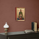 A mounting point is placed at the back of the icon, along with the Certificate of Authenticity and Quality. Each of our icons bears the studio's unique title and logo.