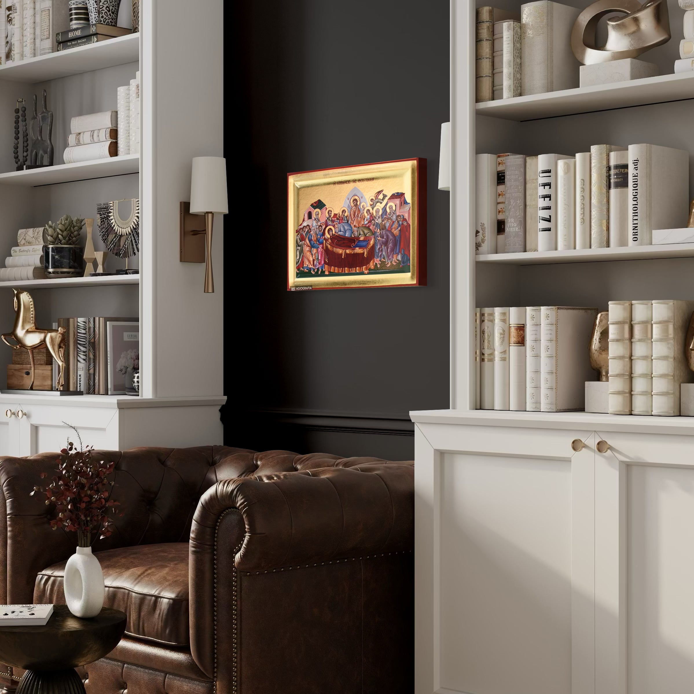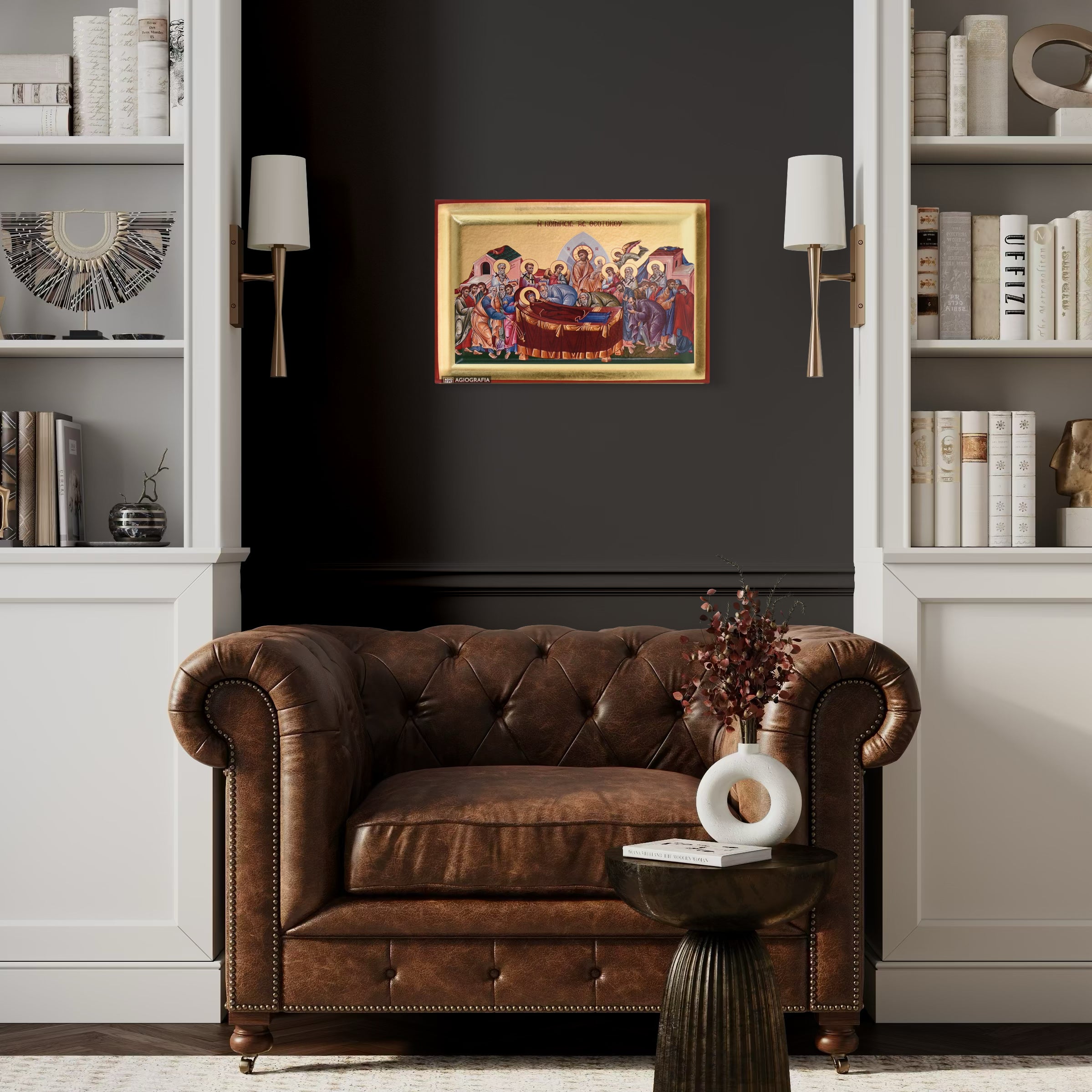 Эта иконка сделана из дерева, а фон сделан вручную из золотых листьев. Тема воспроизводится прямо на холсте с использованием высококачественного оборудования в соответствии с технологией шелкографии. Он доставляется должным образом и надежно упакованным. Если это особый подарок, вы можете при желании улучшить его до роскошного футляра для икон, выбрав подарочную упаковку премиум-класса на странице корзины. Каждая иконка изготавливается по вашему заказу, а процедура подготовки занимает от 4 до 9 рабочих дней.