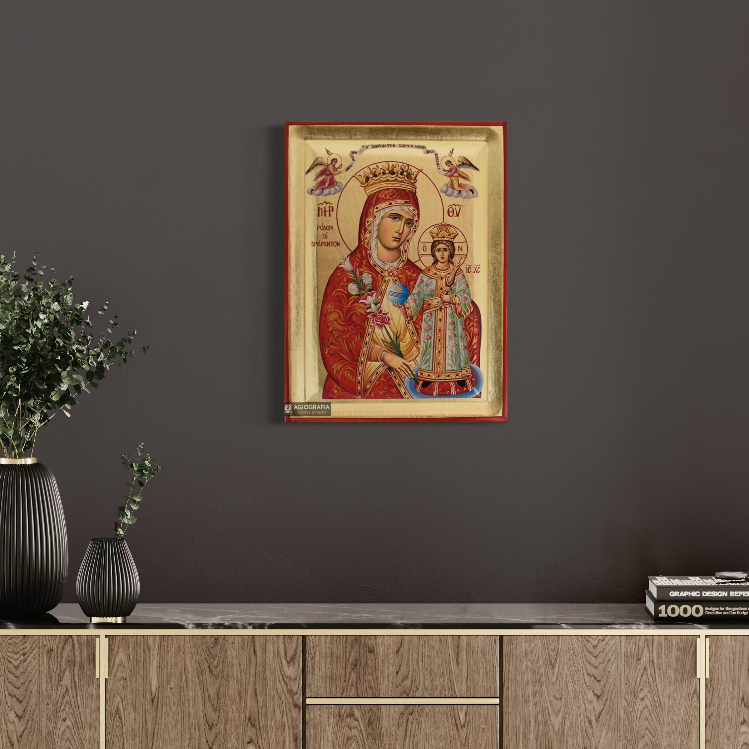 Эта иконка сделана из дерева, а фон сделан вручную из золотых листьев. Тема воспроизводится прямо на холсте с использованием высококачественного оборудования в соответствии с технологией шелкографии. Он доставляется должным образом и надежно упакованным. Если это особый подарок, вы можете при желании улучшить его до роскошного футляра для икон, выбрав подарочную упаковку премиум-класса на странице корзины. Каждая иконка изготавливается по вашему заказу, а процедура подготовки занимает от 4 до 9 рабочих дней.