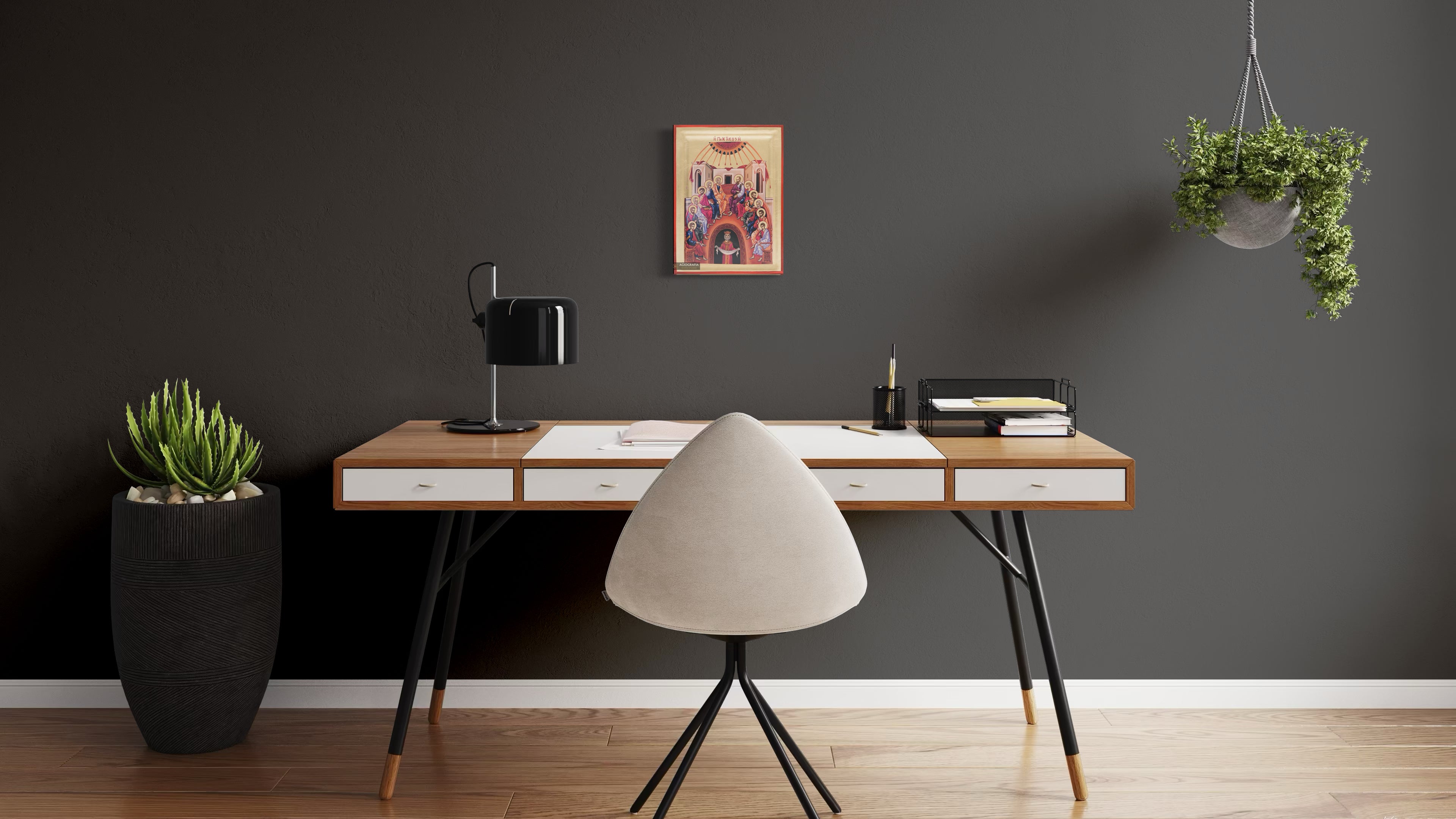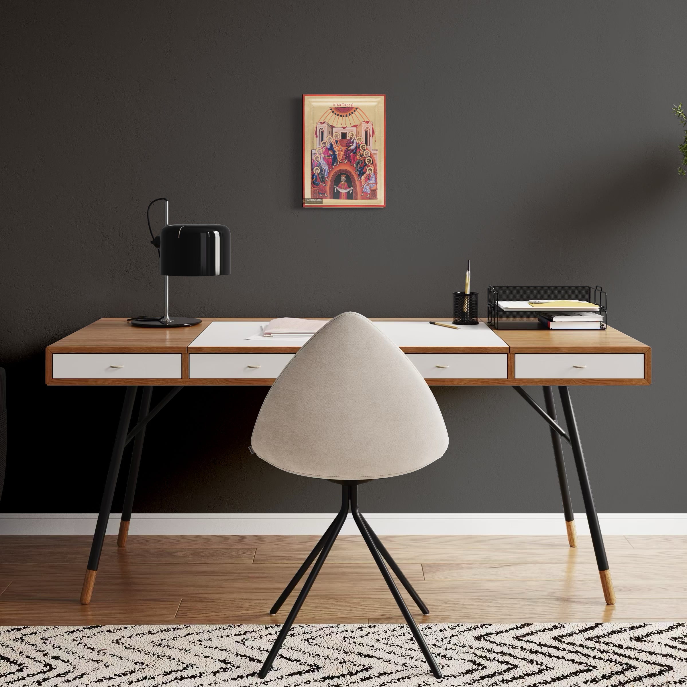 A mounting point is placed at the back of the icon, along with the Certificate of Authenticity and Quality. Each of our icons bears the studio's unique title and logo.
